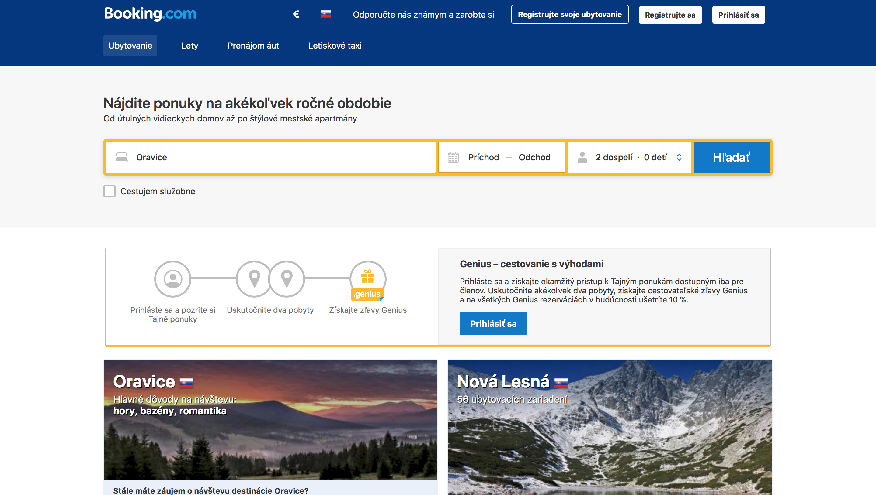 Všetky hotely, penzióny či apartmány nájdeš rýchlo na bookingu. Sleduj každodenné zľavy a vychytaj exkluzívny hotel za cenu stanovačky.