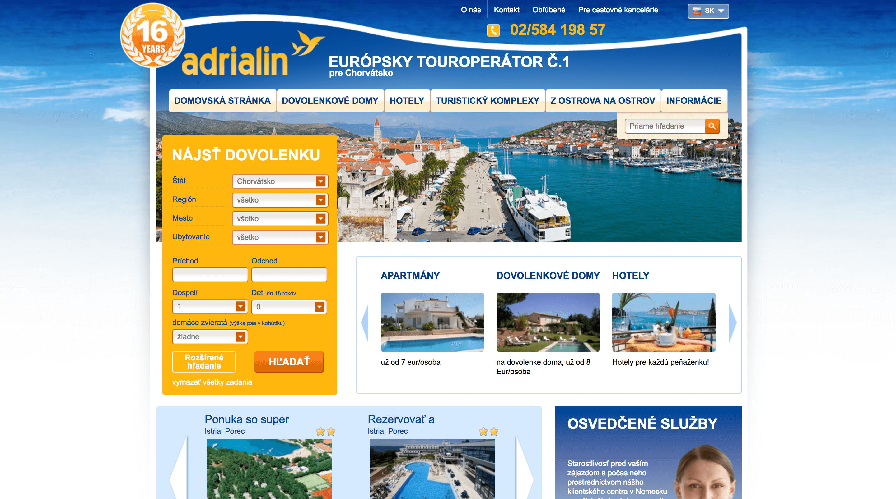 Ak plánuješ dovolenku v Chorvátsku, adrialin.sk je pre teba to pravé. Je európskym touroperátorom č. 1 pre Chorvátsko. Prezri si ich ponuku dovolenkových domov, hotelov a turistických komplexov.