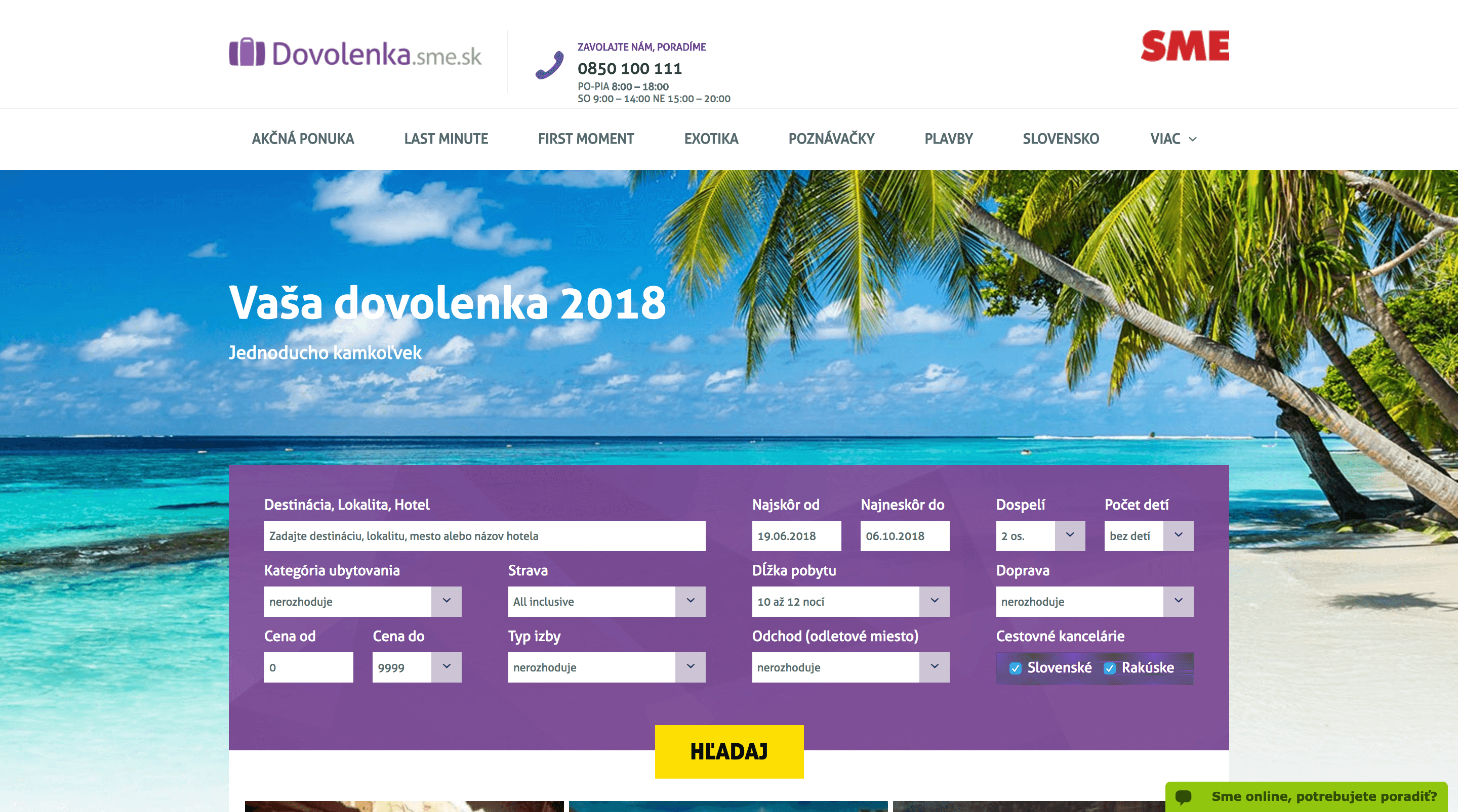 Akčné ponuky, last minute alebo exotika to všetko nájdeš na portáli dovolenka.sme.sk. Ponúka množstvo dovoleniek od rakúskych a slovenských cestoviek na jednom mieste aj s porovnaním cien online.