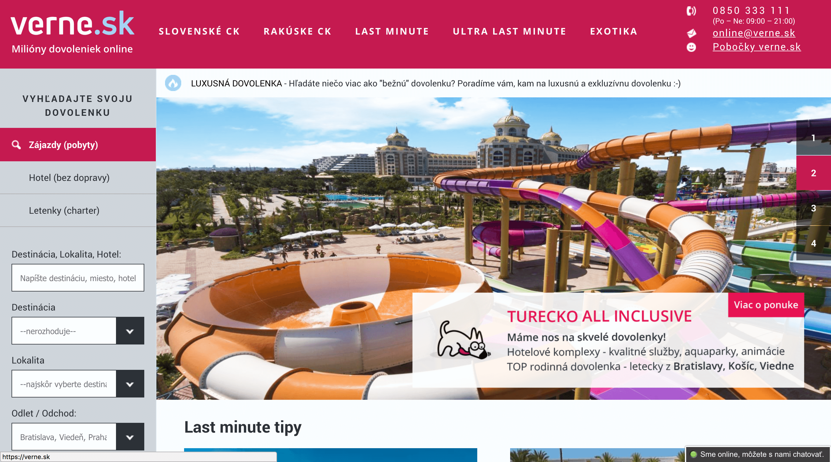 Last minute tipy, letenky, zájazdy a hotely to všetko nájdeš na portáli verne.sk, ktorý ponúka milióny dovoleniek online.